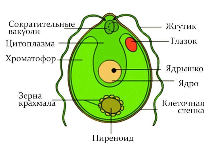 5. У хламидомонады есть целлюлозная клеточная стенка, у амебы ее нет