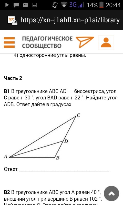 угол DAC = 22 градуса (т.к. BAD = 22, а AD - биссектриса)