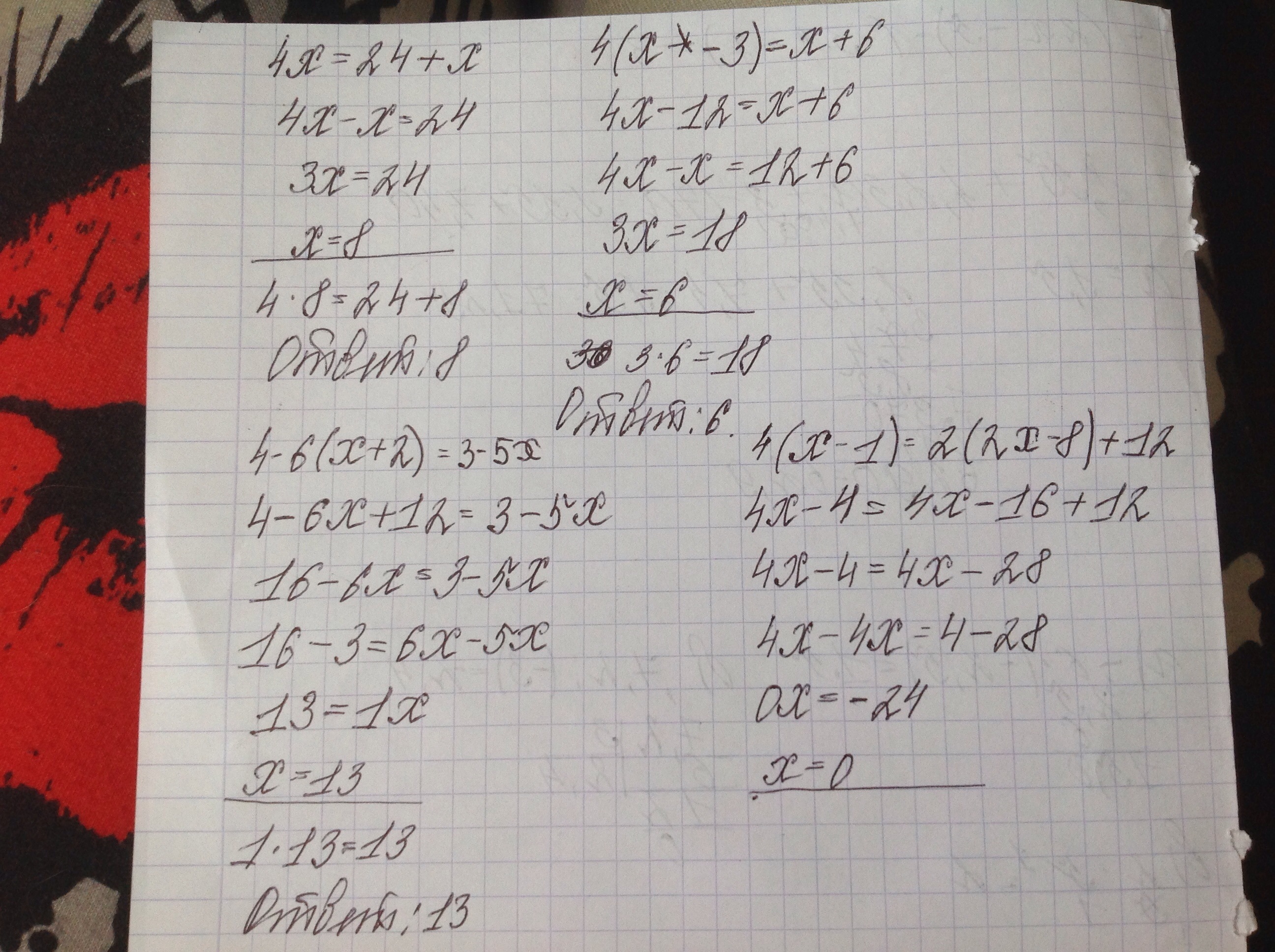 4- 6х - 12 = 3-5х
