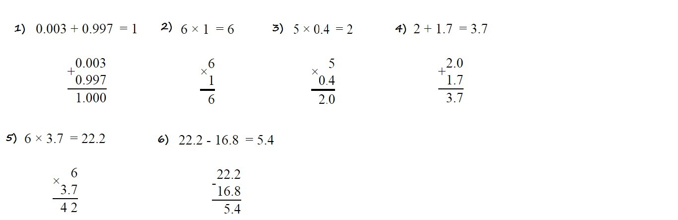 6 × (0.003 + 0.997) × (5 × 0.4 + 1.7) - 16.8 = 5.4