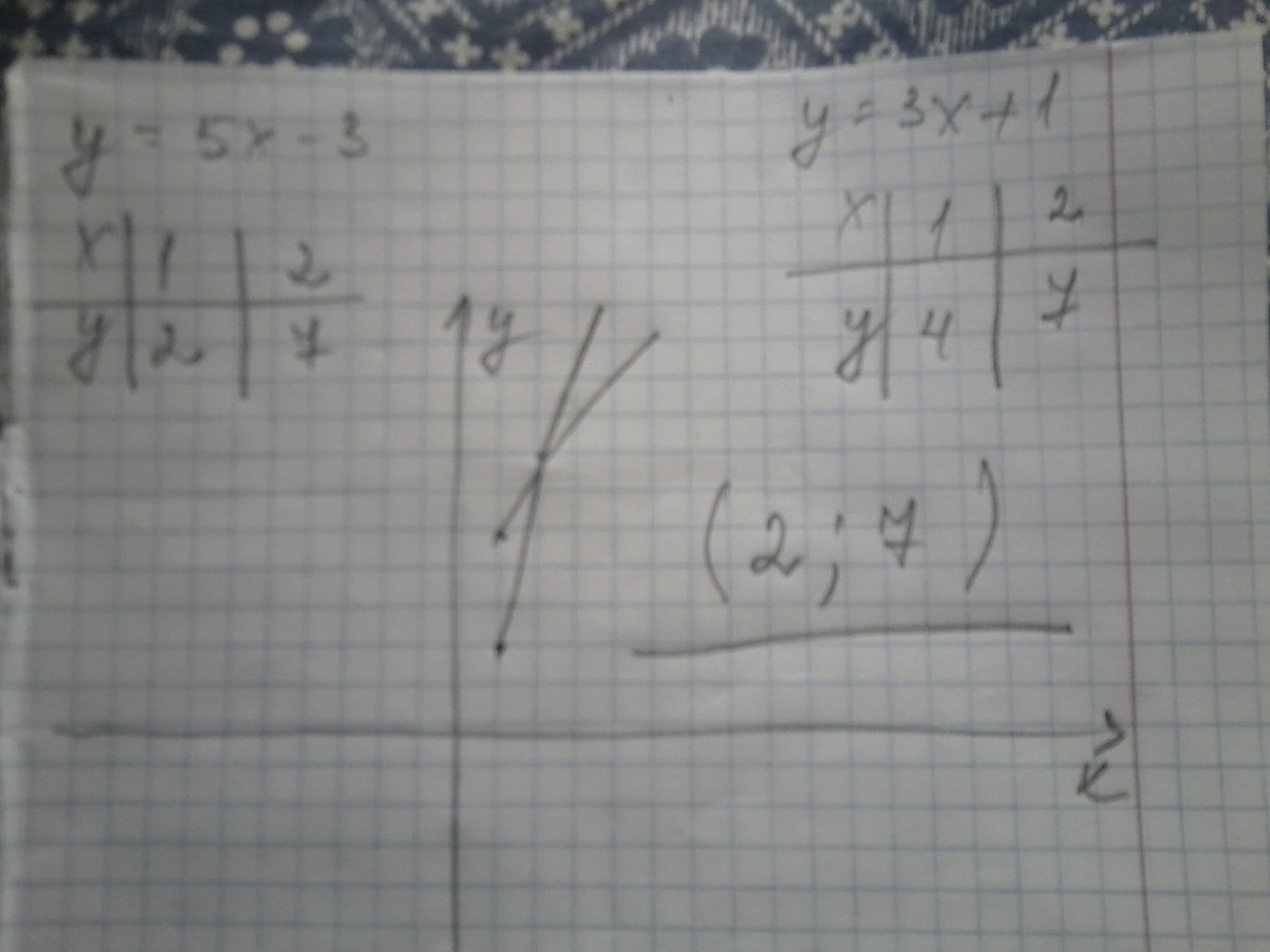 Пожалуйста помогите. Найдите координаты точек пересечения прямых, заданных уравнениями: у=5х-3 и у=3х+1