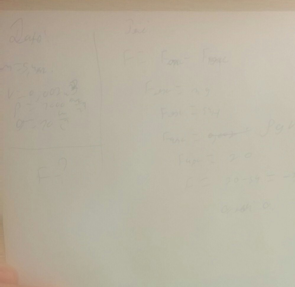 (масса воды(в шаре) - масса шара)*ускорение свободного падения.