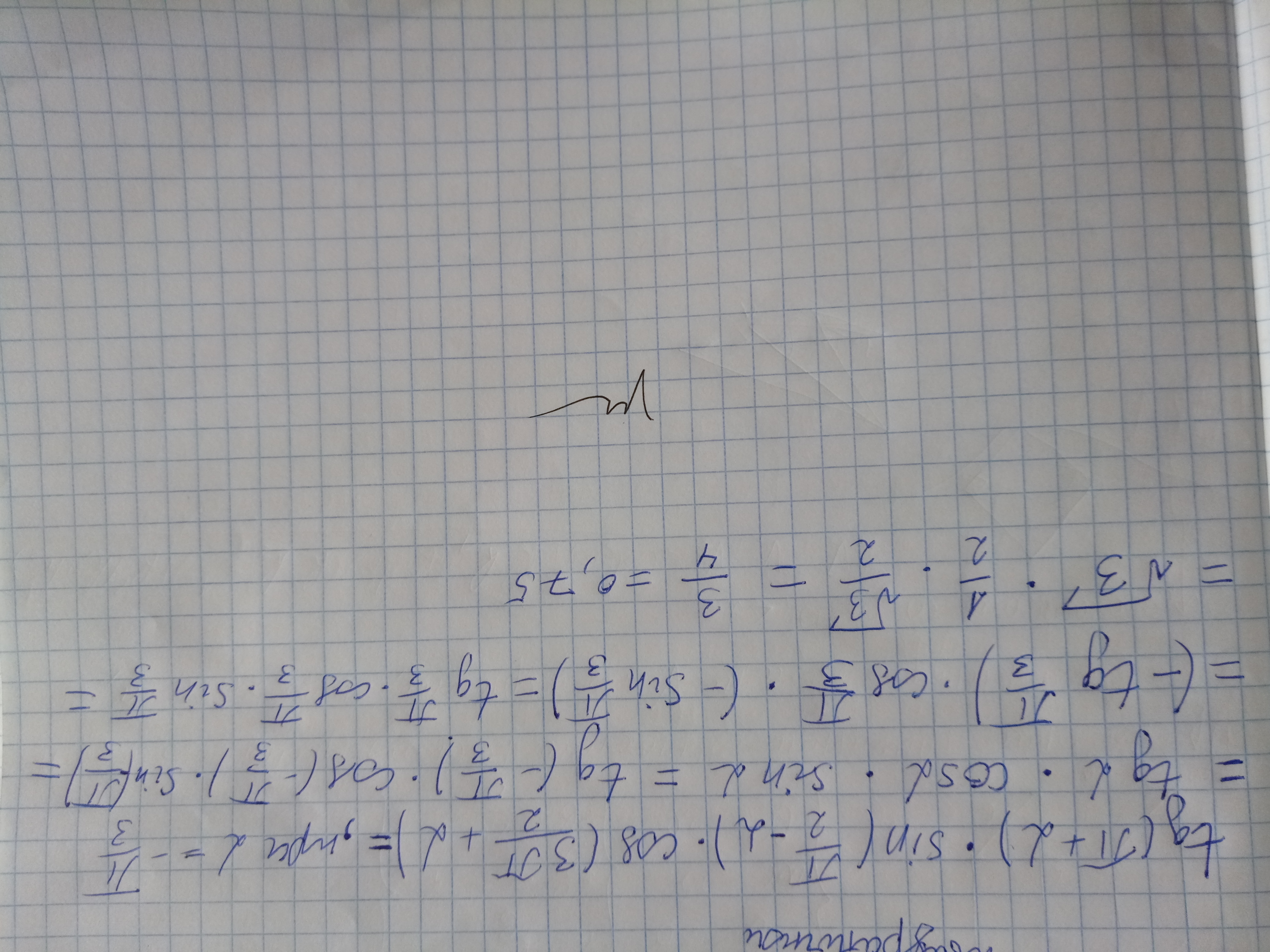 Найдите значение выражение tg(n+a)× sin (n/2 - a)× cos (3n/2 + a) при а=-п/3. Пожалуйста помогите разобраться