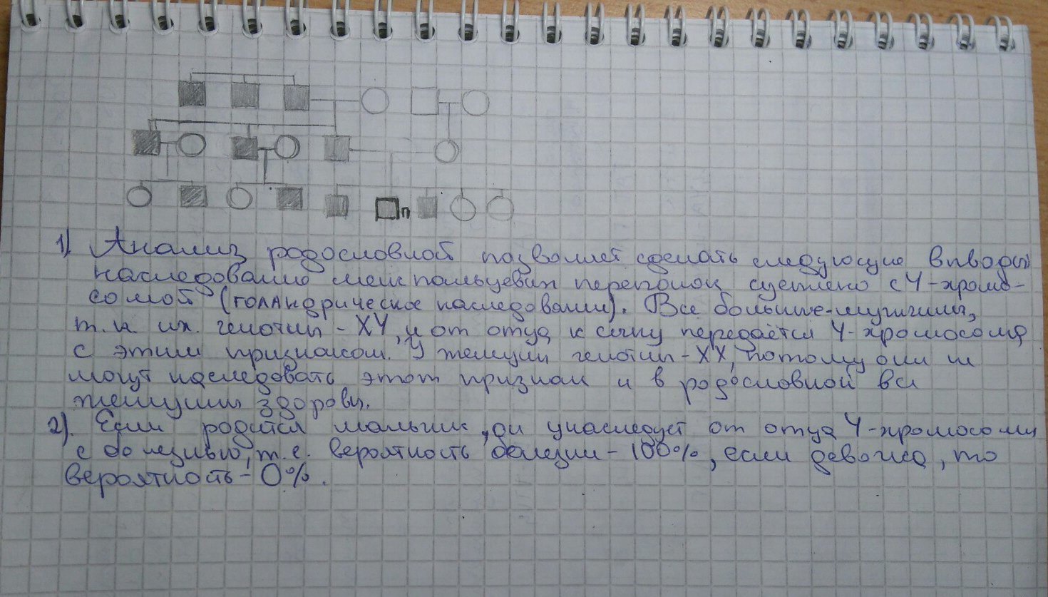 Пробанд имеет перепонки между пальцами .Два его брата больны, три сестры здоровы Отец пробанда болен, мать здорова. Дедушка и бабушка пробанда по материнской линии здоровы, бабушка пробанда по отцовской линии здорова, а дедушка и три его брата больны. Два дяди больны и имеют каждый по здоровой дочери и одному больному сыну. Нарисуйте схему родословной. Определите тип наследования межпальцевых перепонок. Какова вероятность рождения больных детей у пробанда, если его жена здорова?