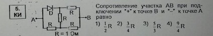 Сопротивление участка AB при подключении "+" к B и "-" к A равно: