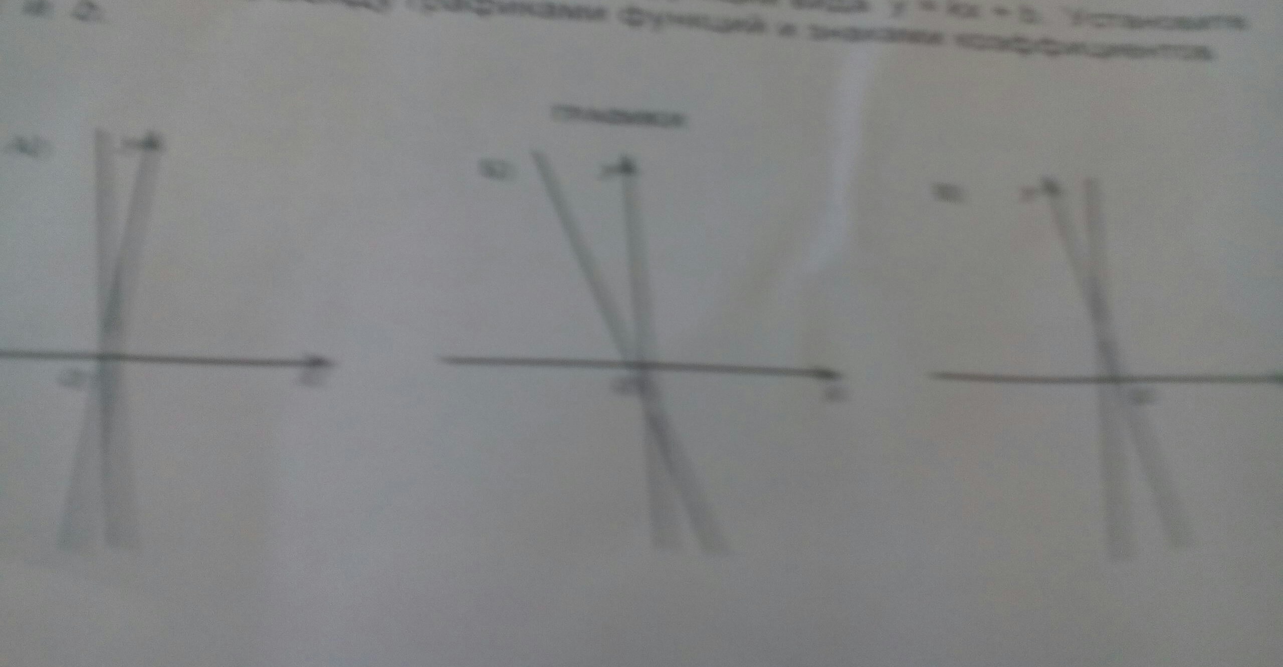 на рисунке изображены графики функций вида y=kx+b установите соответствие между графиками функций и знаками коэффициентов k и b
