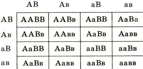 F₁: *решетка Пеннета, см. вложение*