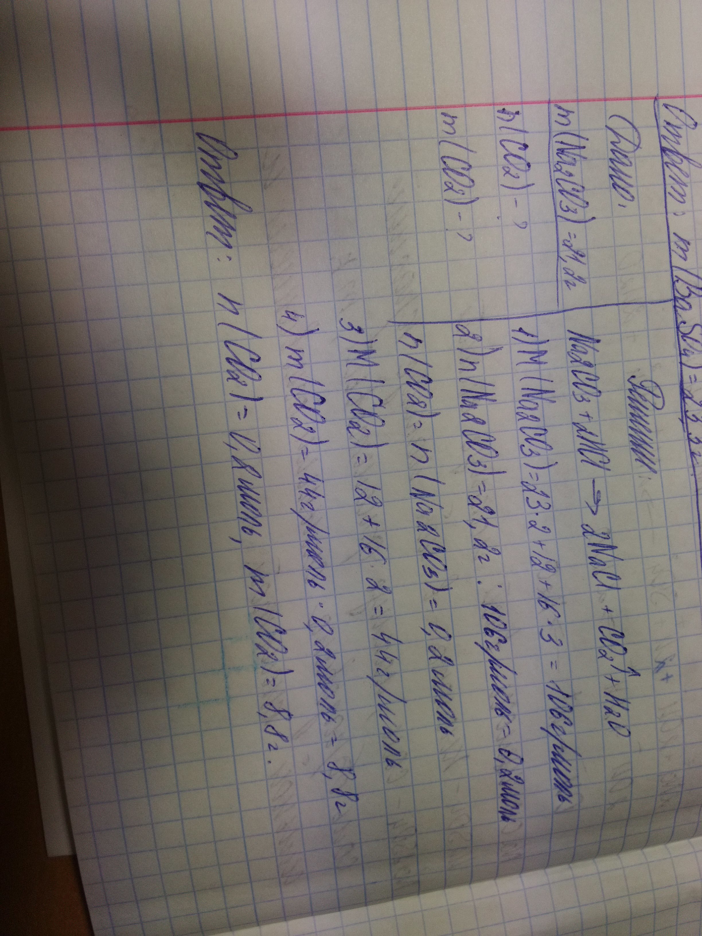 Расчитайте кол-во вещ-ва и массу оксида углерода (4),который образуется при взаимодействии 21.2г карбоната натрия с соляной кислотой.