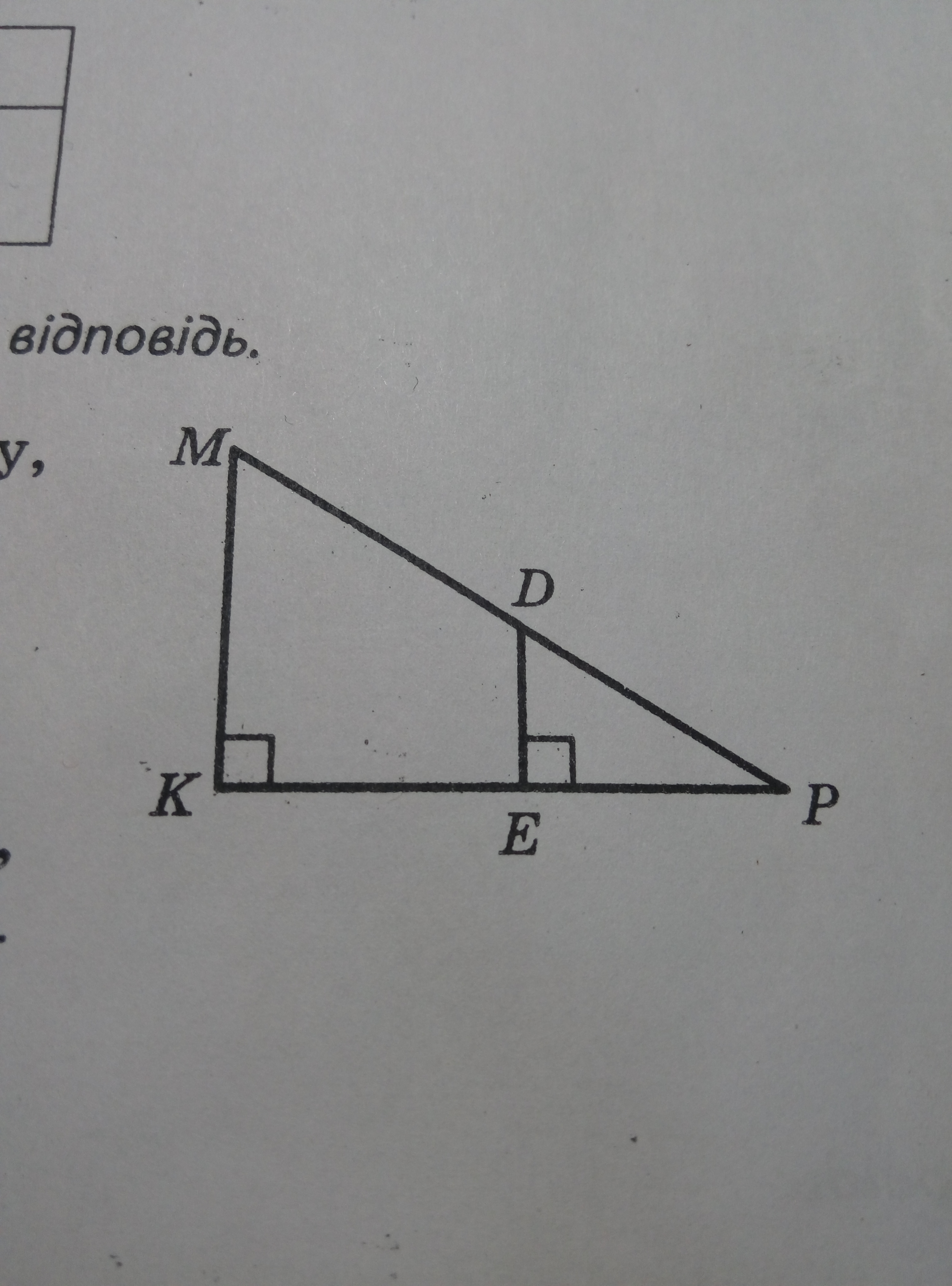 Знайдіть довжину відрізка MK зображеного на рисунку,якщо KP=35 см, EP=14 см, DE=12 см