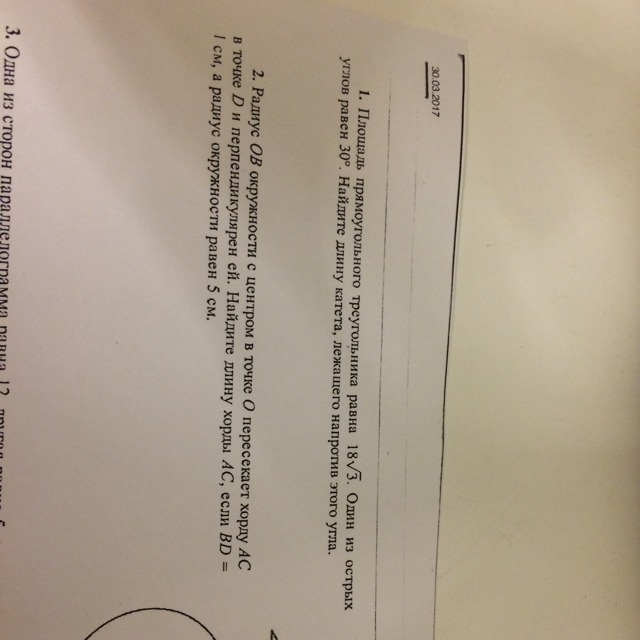 По свойству какому-то там, сторона лежащая напротив угла в 30 градусов в прямоугольном треугольнике равна половине гипотенузы.