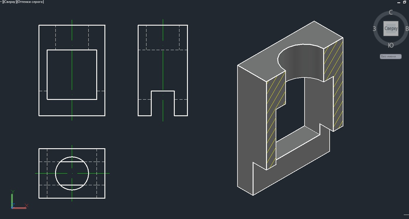 По аксонометрической проекции модели построить её чертеж с трех проекциях
