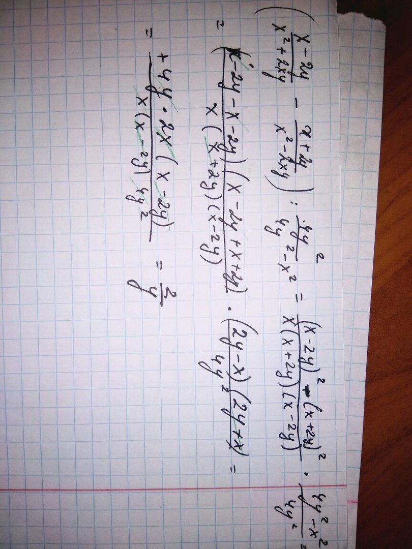 привела к общему знаменателю.. значит первую дробь умножаем на (х-2у), вторую на (х+2у). Отсюда и квадрат