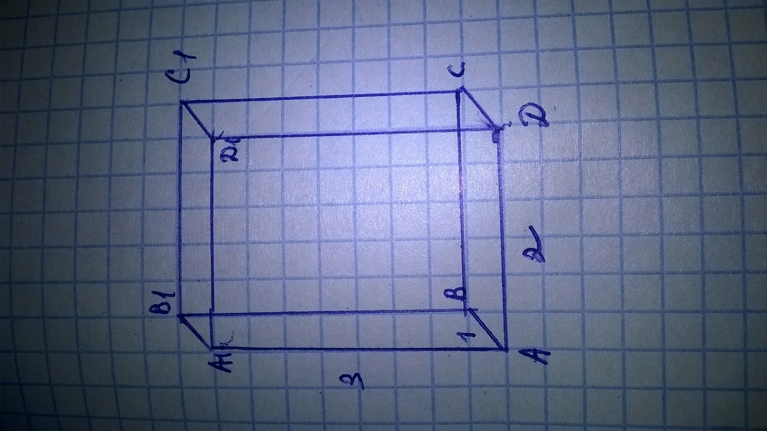 Дано:АВСD-прямоугольный параллелепипед,АD=2 см;AB=1 см;V=6 см³