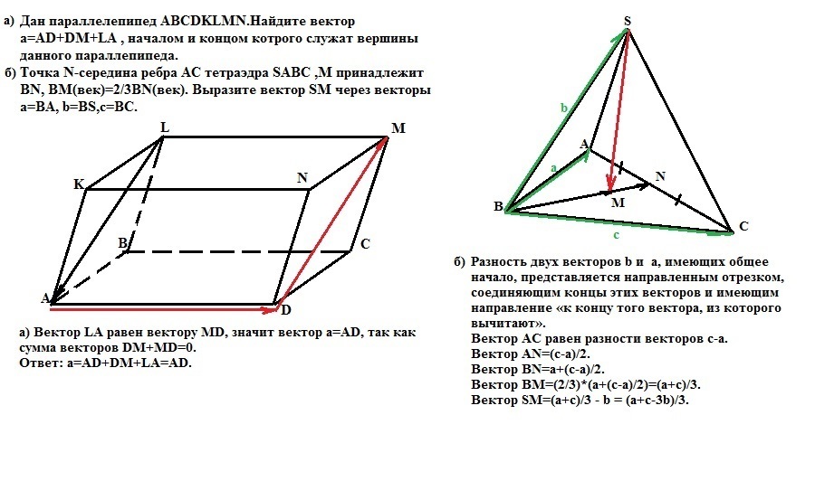 Вектор LA равен вектору MD, значит вектор а=AD, так как сумма векторов DM+MD=0 (сумма противоположных векторов).