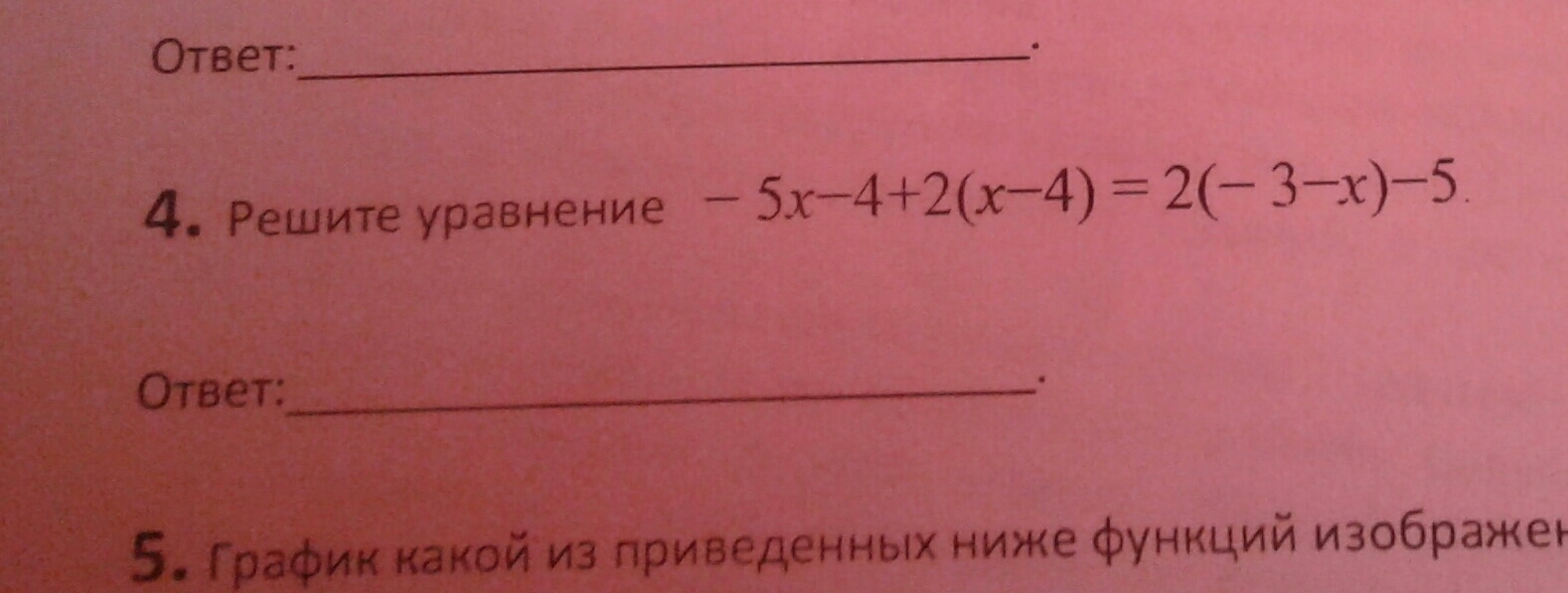 - 5x - 4 + 2(x - 4) = 2 ( - 3 - x) - 5
