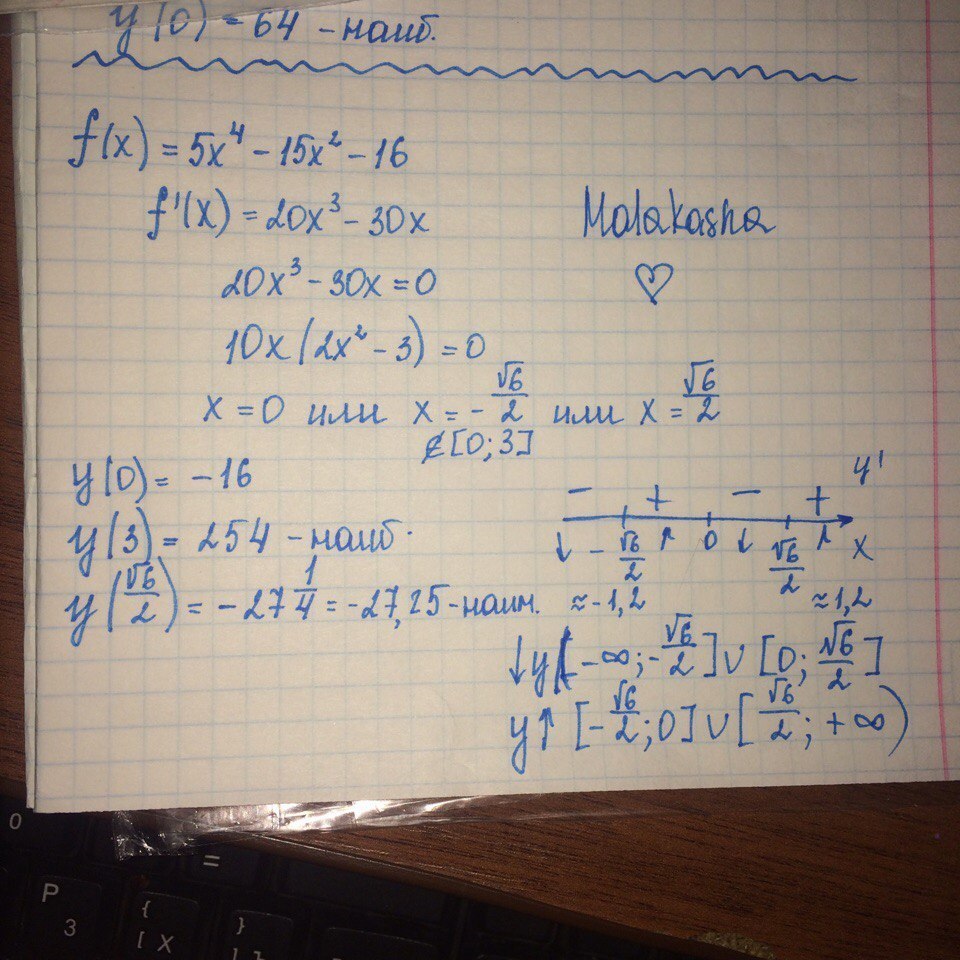 Экстремумы , промежутки возрастания и убывания , наибольшее и наименьшее значение на промежутке [0,3]