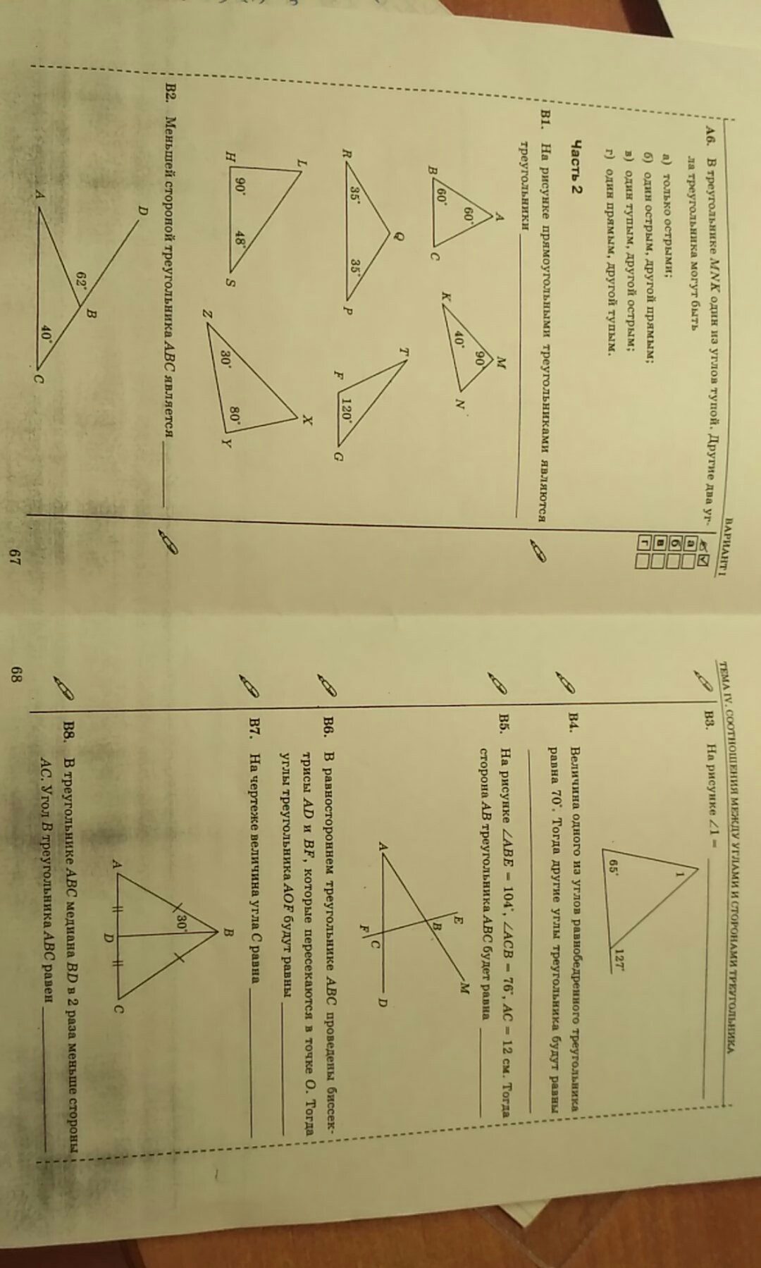 В4. 70° и 40° или 55° и 55° ,т.к...