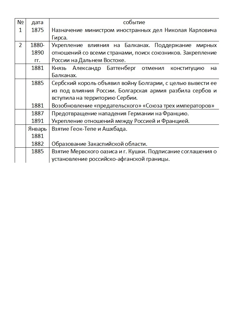 Нужна таблица "дата, события, результат" по пораграфу 35) 8 класс.