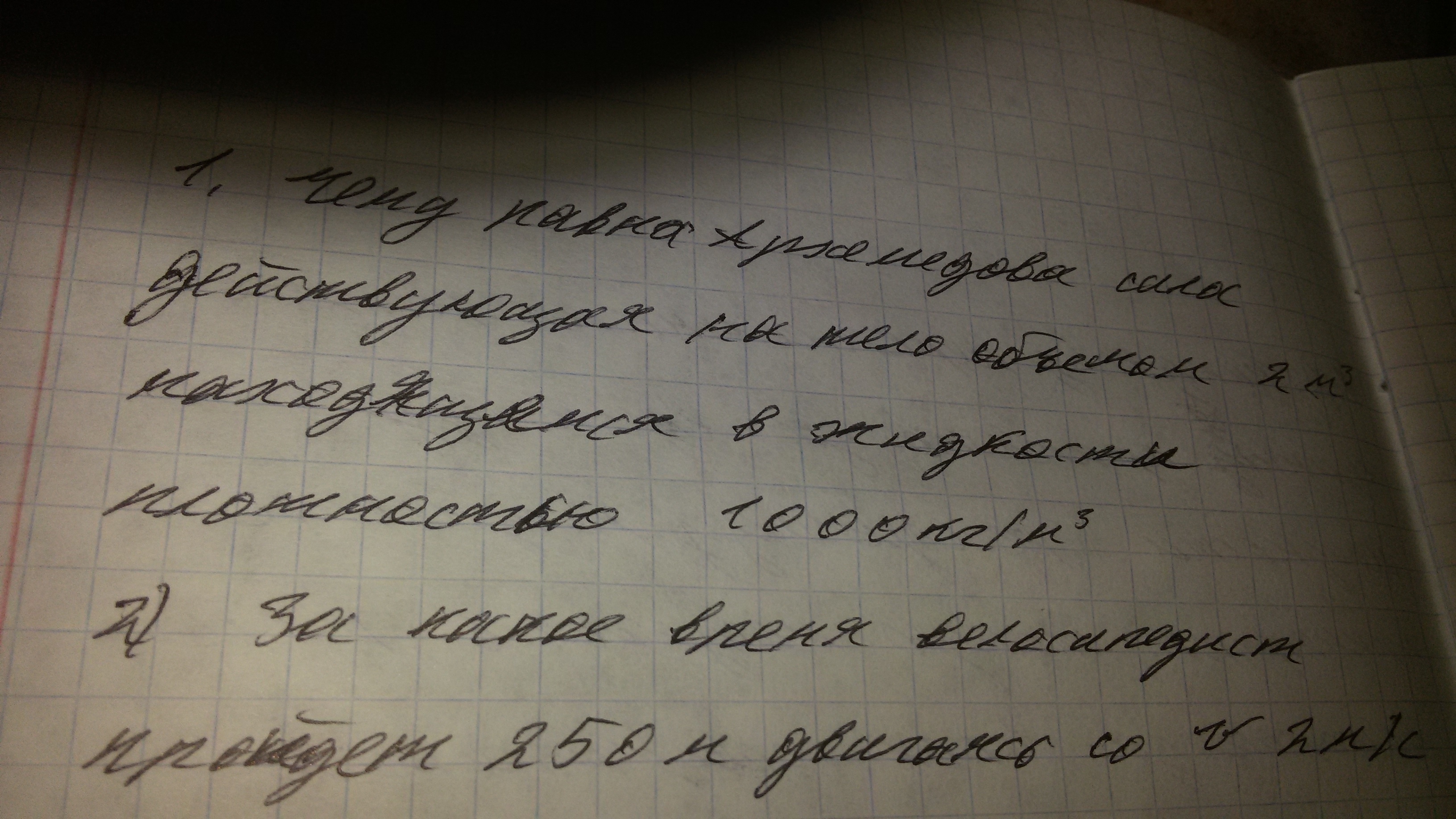 1 ) Пр формуле архимедовой силе ( Fарх= pжgVт ; Fарх - архимедова сила ; p ж -плотность жидкости ; g - ускорение свободного падения ; V т - объём тела )