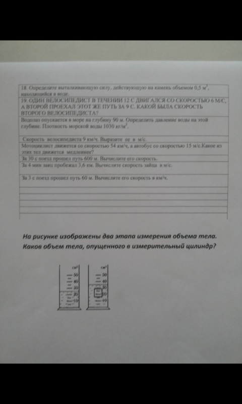 19) S(первого велосипеда)=12с(время)*6м/с(скорость)=72м. По условию задичи второй велосипедист прошёл то же расстояние за 9с, значит 72/9=8. Ответ: 8м/с