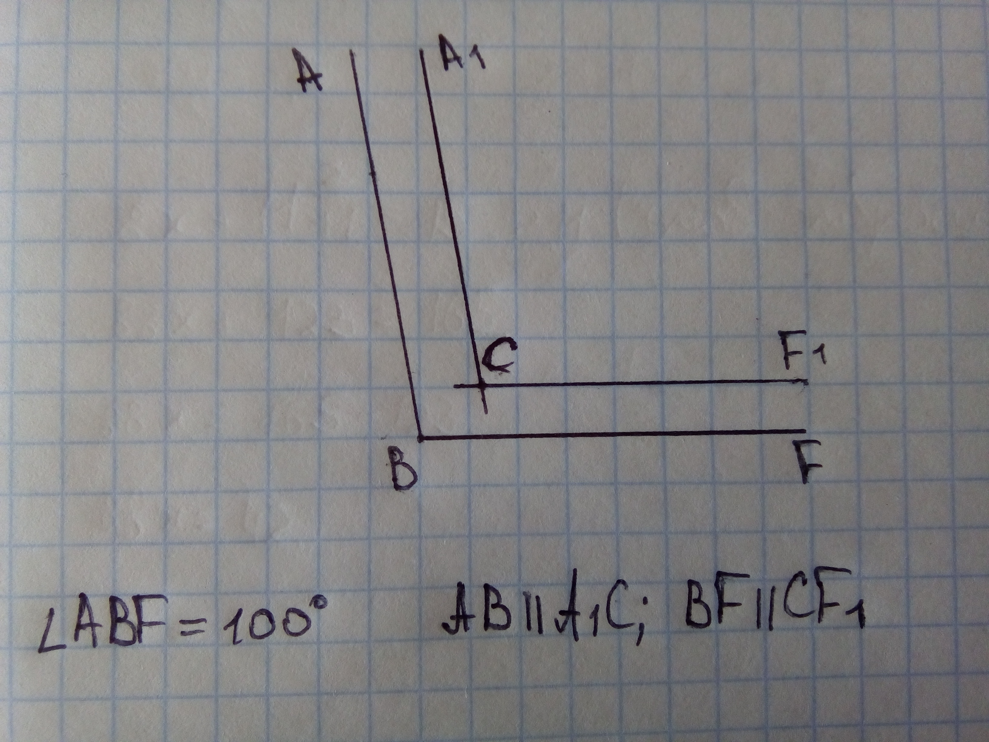 постройте угол равный 100 градусов отметьте внутри угла точку c проведите через точку c параллельные сторонам угла