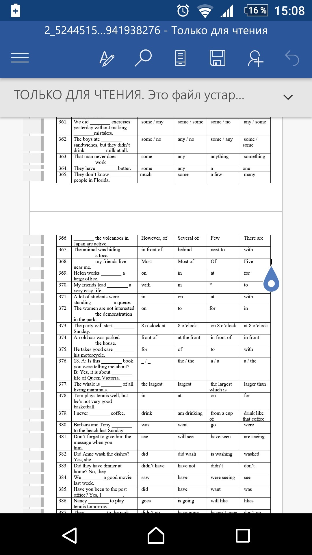 361 some/any 362 some/ any 363any 364some 365many 366 several of 367behind 368most of 369in 370- 371in 372in 373at 8 o'clock 374in front of 375of 376the/the 377the largest 378at 379drink 380went 381see 382did 383didn't 384saw 3854ave 386is going