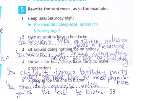 2. Тебе не следует принимать аспирин, если только у тебя не болит голова.