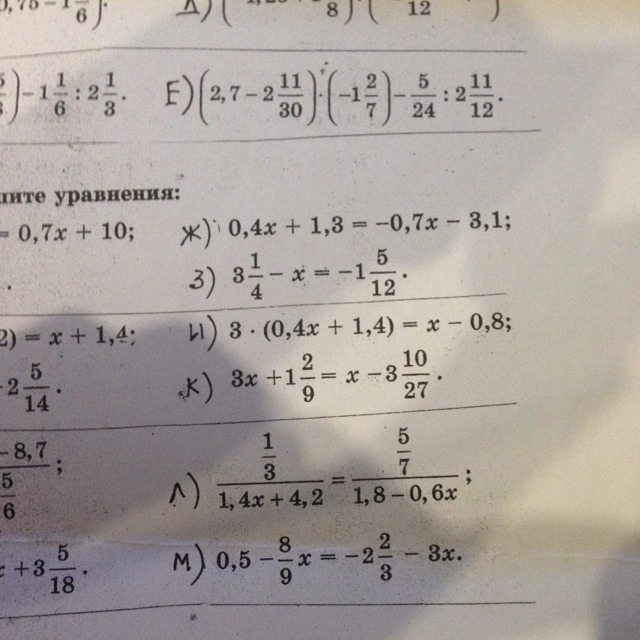ж) 0.4х+0,7х=-3,1-1,3