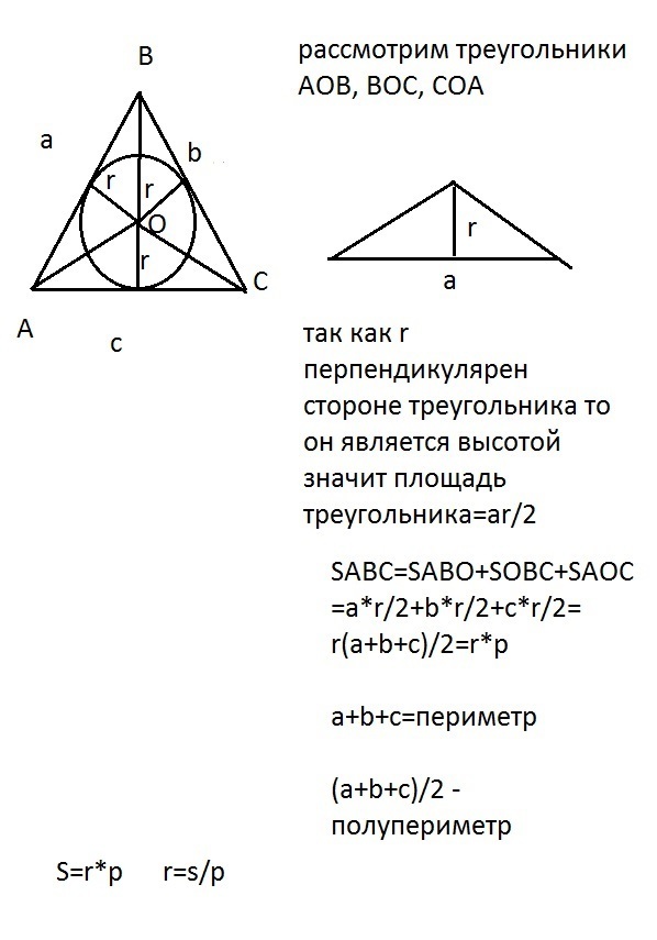 r=S/р , где s- площадь треугольника, p-полупериметр