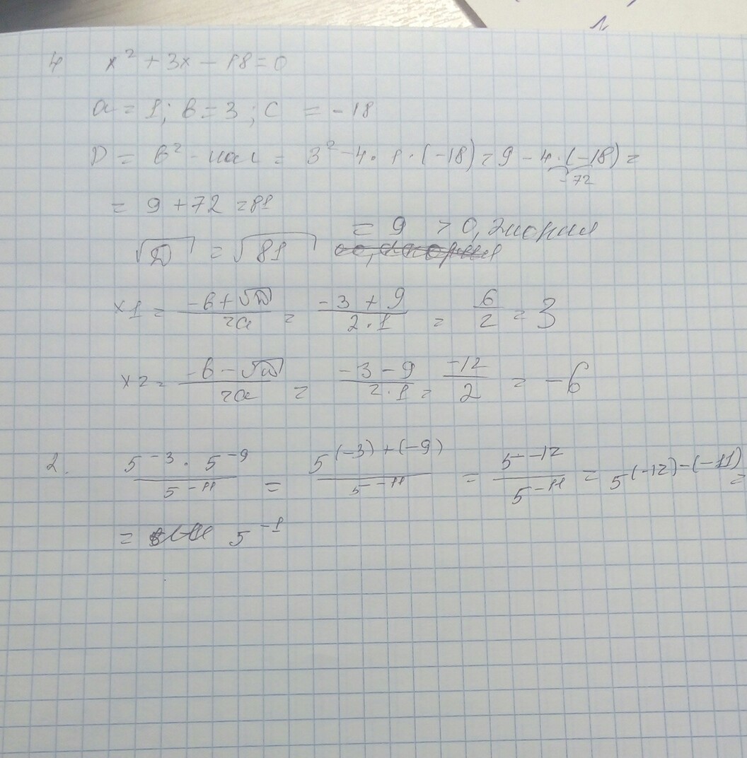 4. Ответ : Х1 = 3; Х2 = - 6.