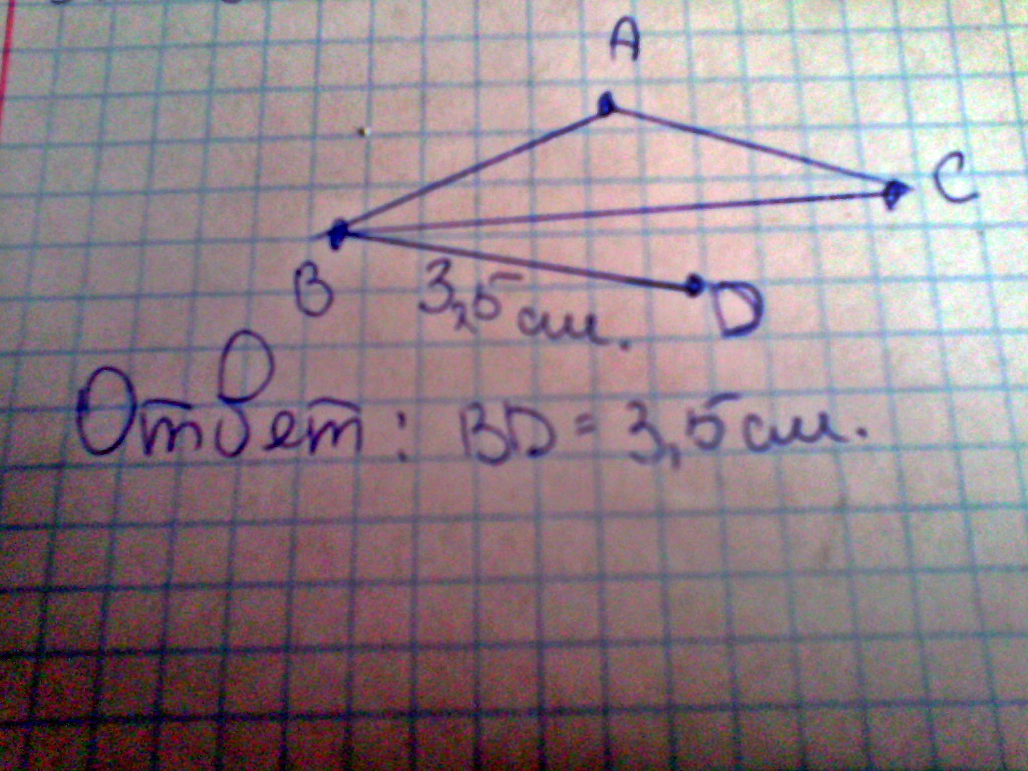 Отметьте точки A, B, C на листе так чтобы они не лежали на одной прямой. Начертите прямые AB, BC, AC. Отметьте точку D лежащую вне треугольникаABC. Измерьте отрезок BD и запишите результат измерения. ПОМОГИТЕ ПОЖАЛУЙСТА!