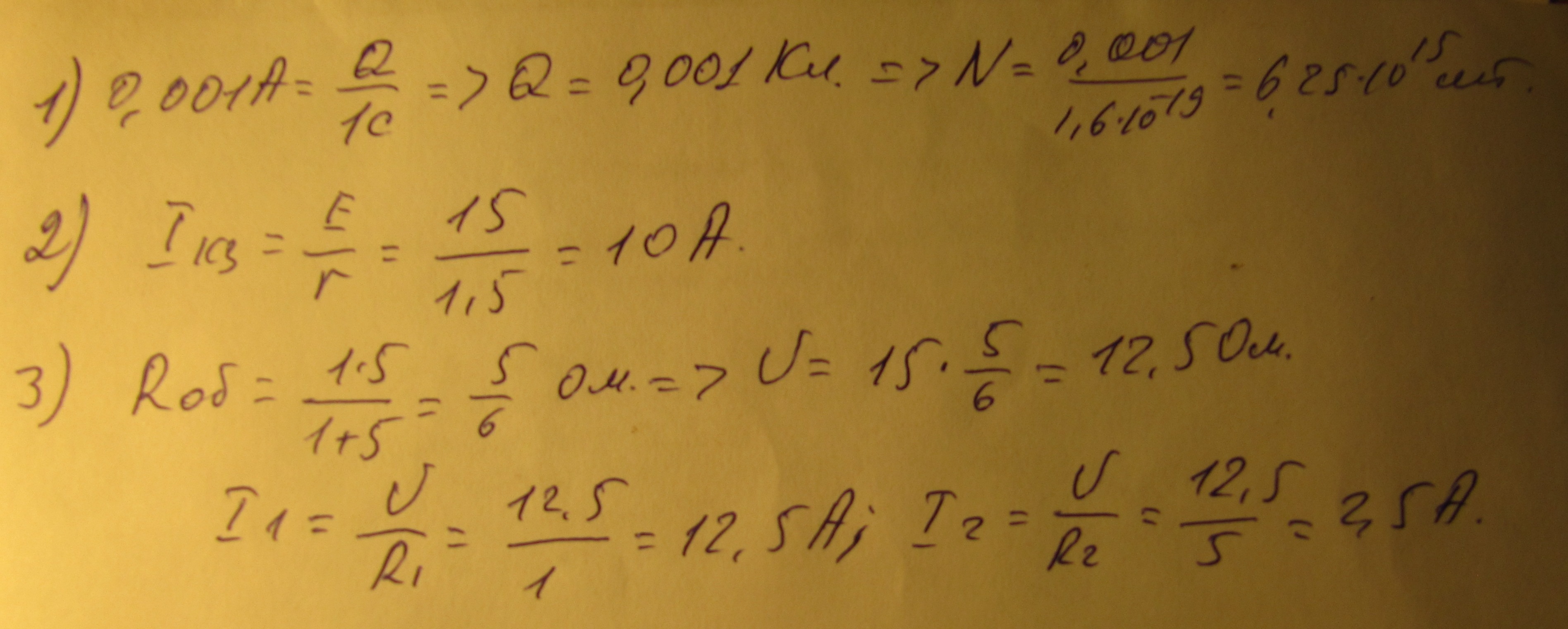 1) Сколько электронов должно пройти через сечение проводника за 1 с, чтобы сила тока в проводнике была равна 1 мА?