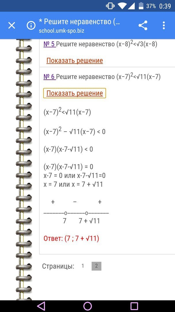 (х-7)^2=(х-7)(х-7) и во второй строке решения просто выносят общий множитель за скобку и получается: (х-7)(х-7-v11)<0
