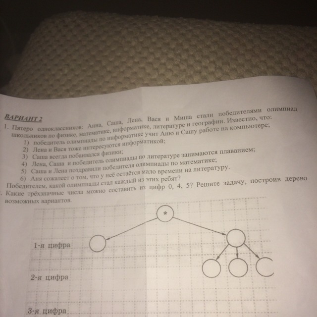 2) Какие трёхзначные числа можно составить из цифр 0,4,5? Решите задачу, построив дерево возможных вариантов.