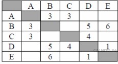 Между населёнными пунктами А, В, С, D, Е построены дороги, протяжённость которых (в километрах) приведена в таблице