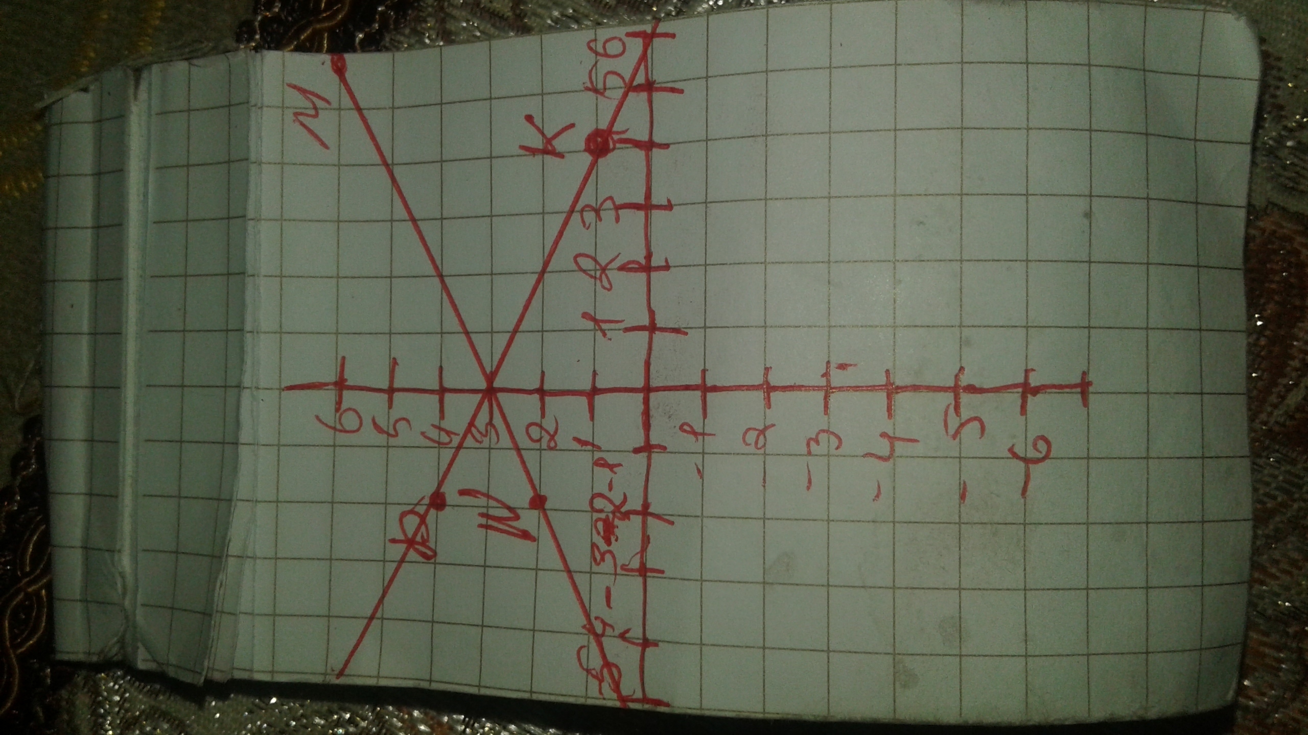Отметьте в кординатной плоскости точки M(6;6),N(-2;2),K(4;1), P (-2;4). Проведите прямые M N и K P