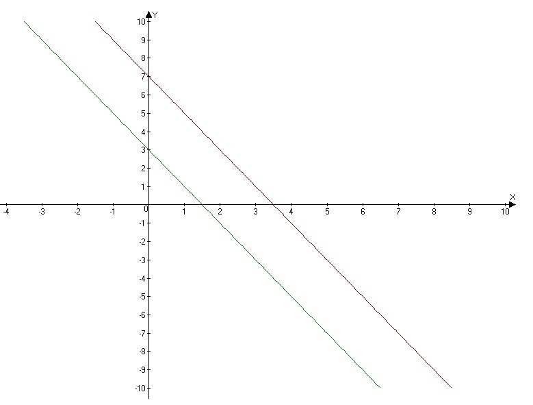 Пересекаются ли графики функций y=-2x+3 и y=-2x+7