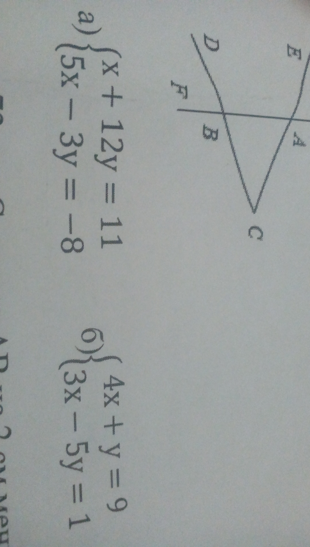 x=11-12y; 5*(11-12y)-3y= -8; 55-60y-3y= -8; -60y-3y= -8-55; -63y= -63; y=(-63)/(-63)=1. x=11-12*1=11-12= -1.Ответ: (-1:1).