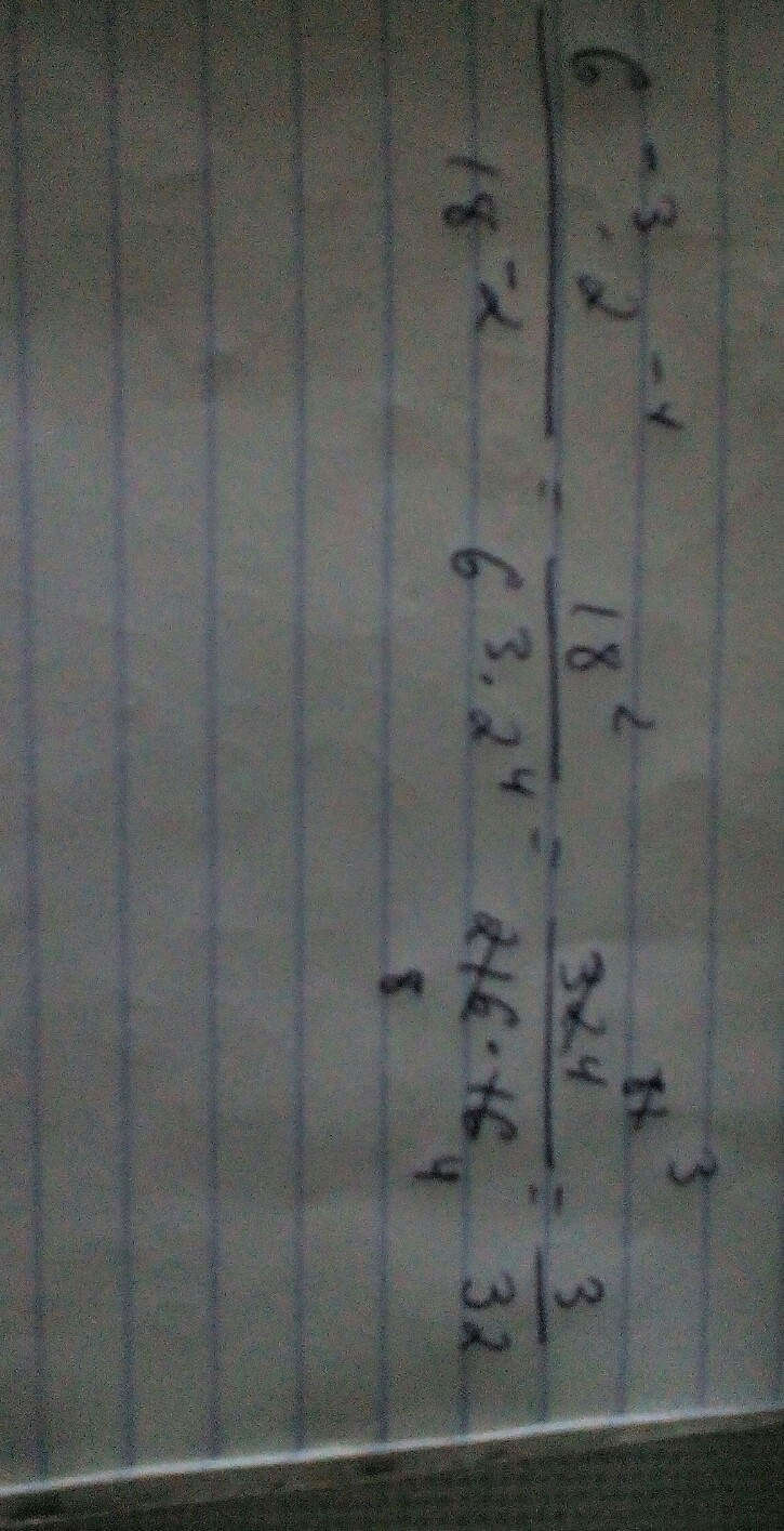 6^-3 * 2^-4\18^-2 По правилу переворачиваем дробь и меняем знаки степеней