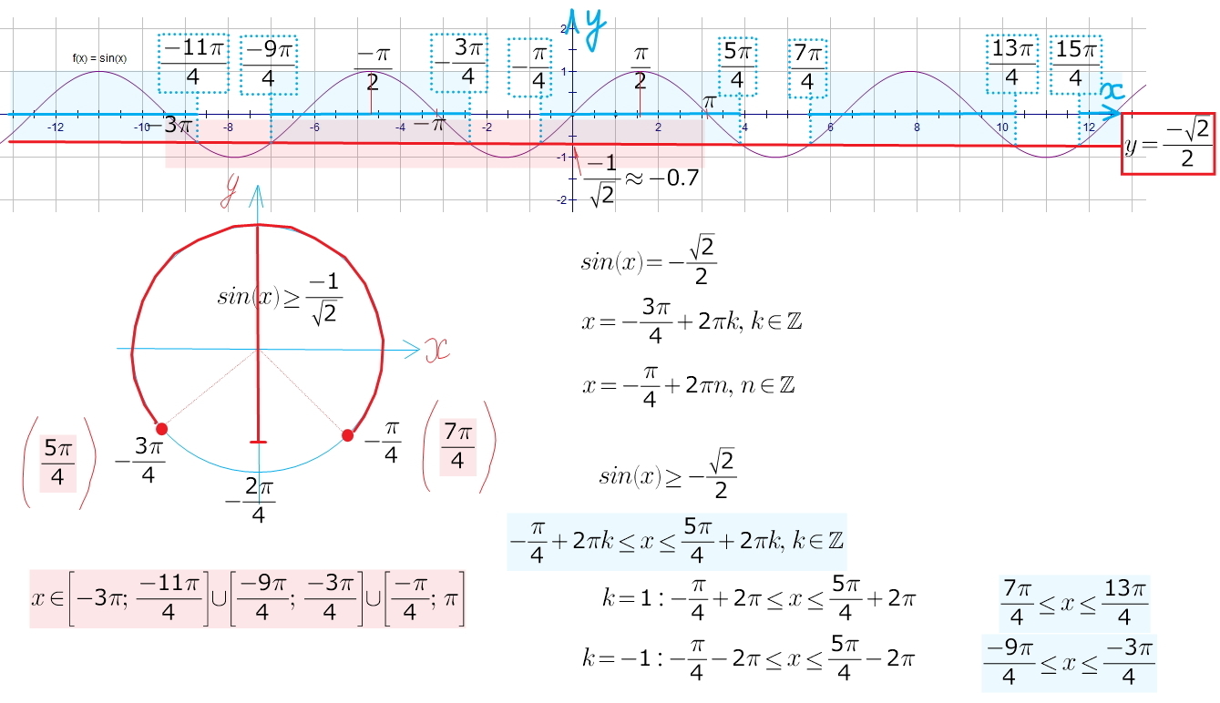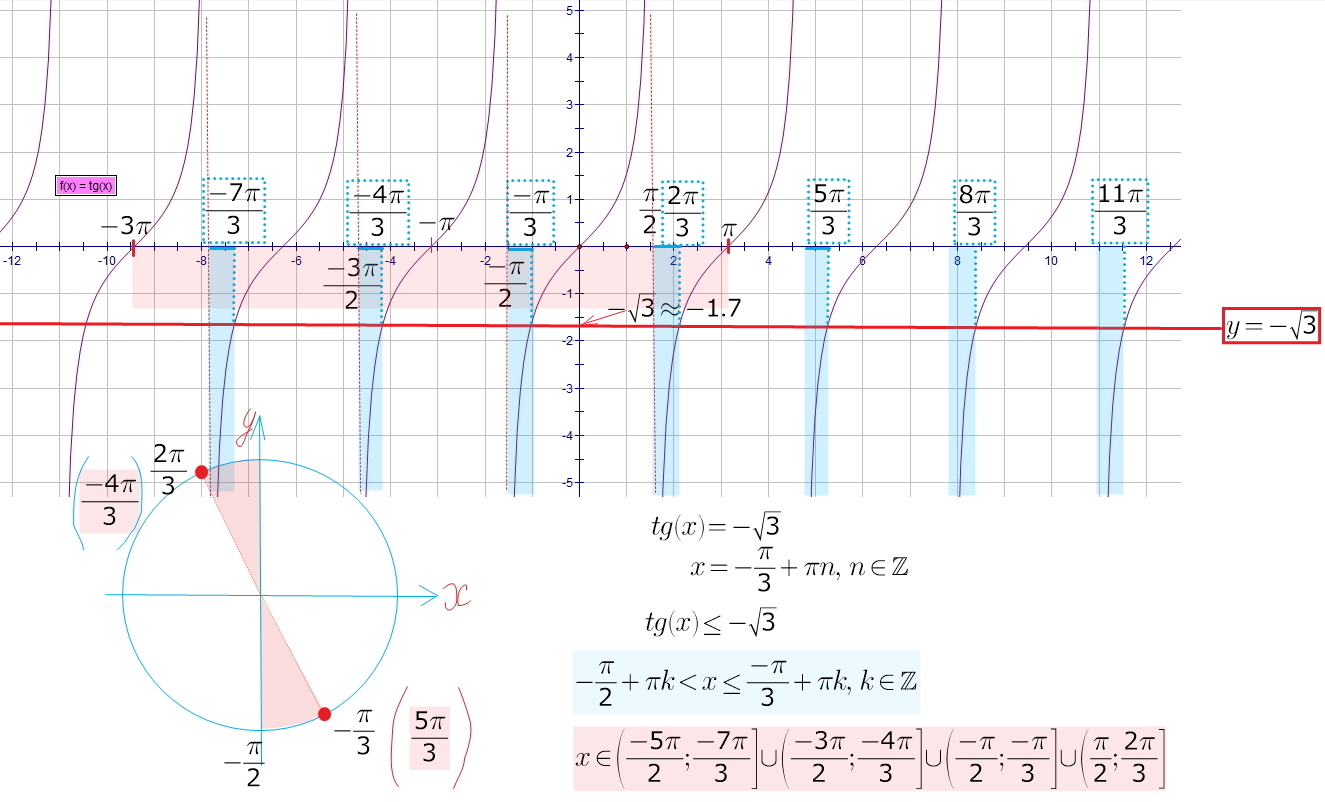 Используя графики тригонометрических функций, найти все решения неравенства, заключенные в промежутке [-3Пи; Пи]