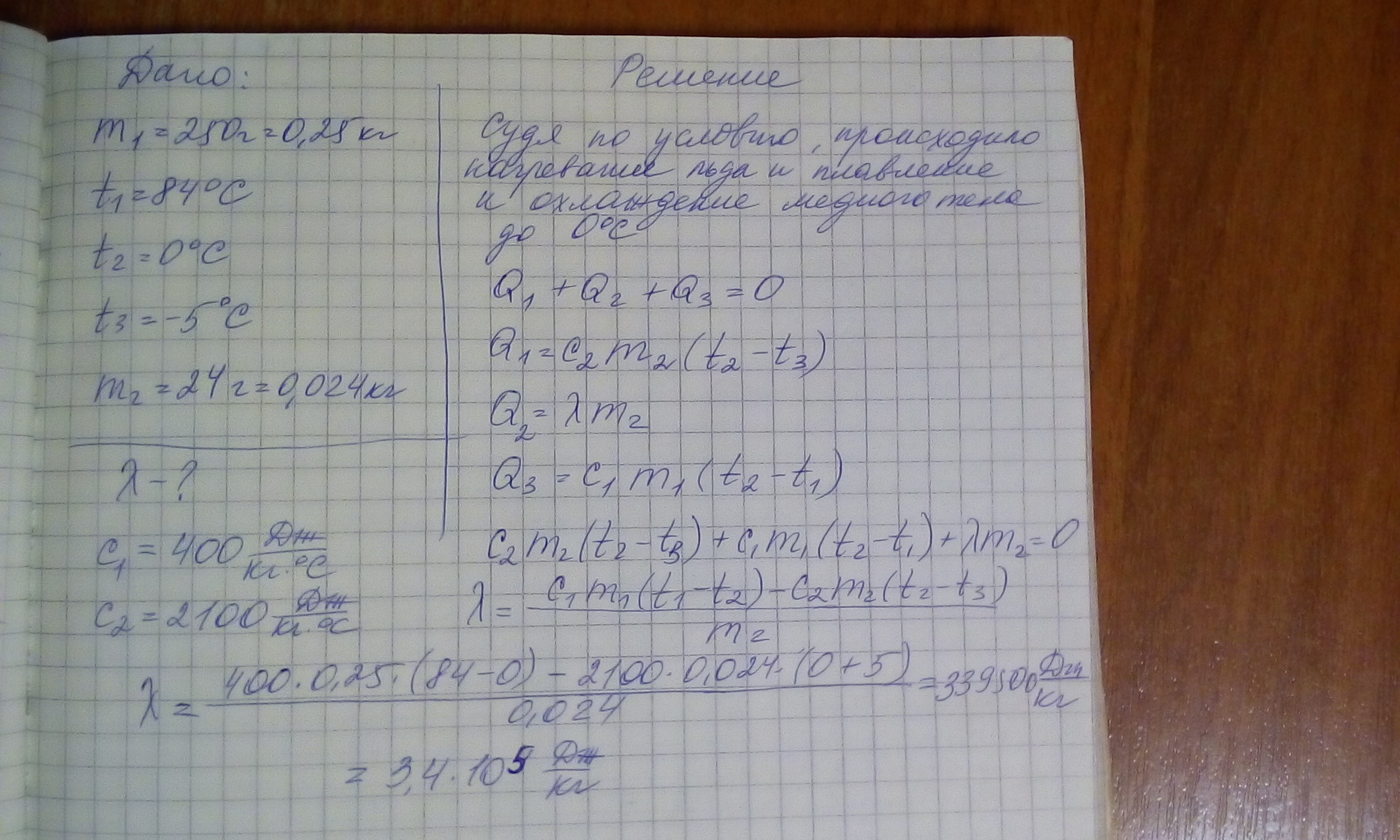 _________________ =(8400 - 252)/0,024=339500=3,4 10⁵ Дж/кг;