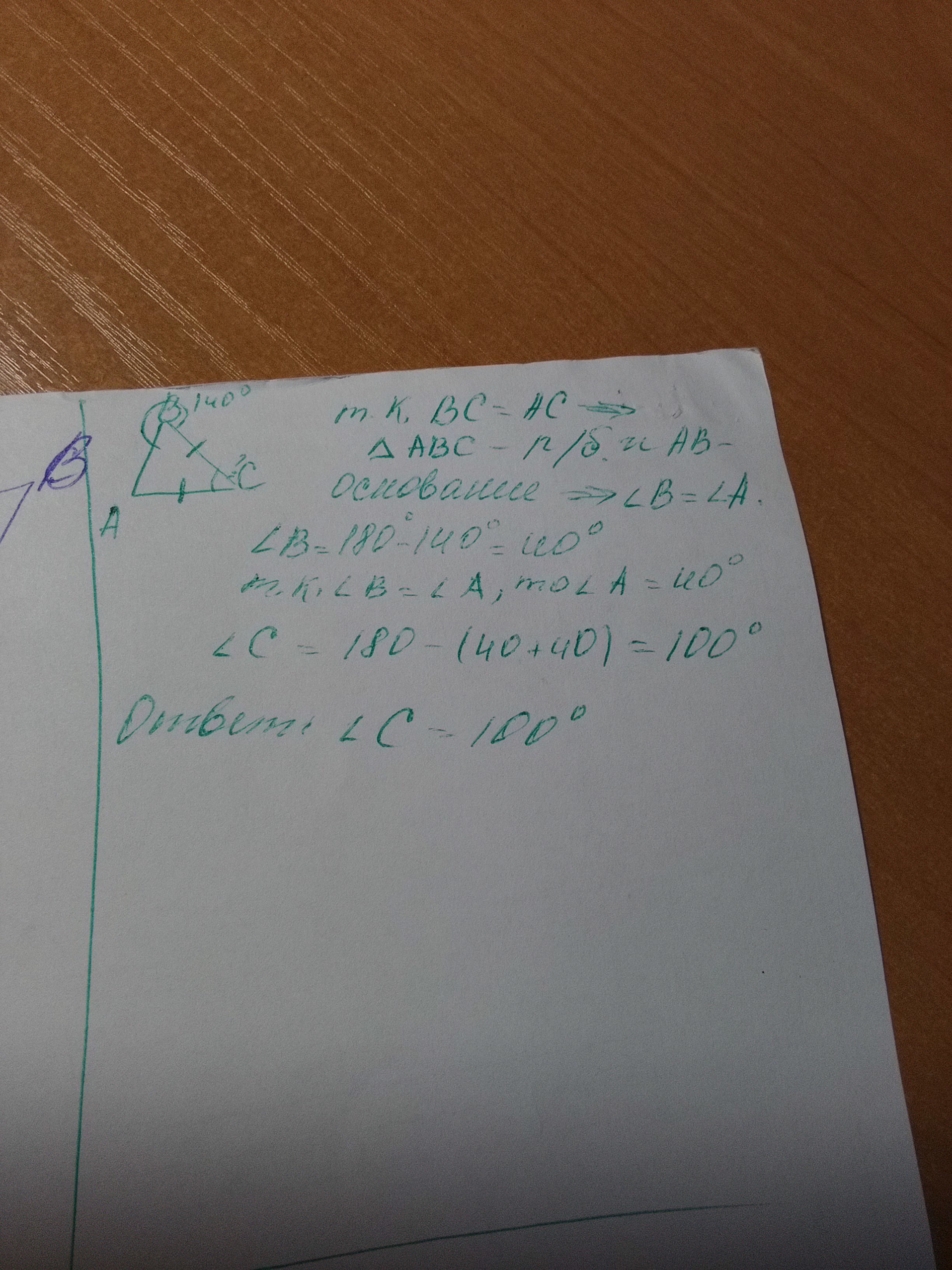 L АВС=180-140=40(т.к сумма внешнего угла и внутреннего, смешного с ним, равна 180)