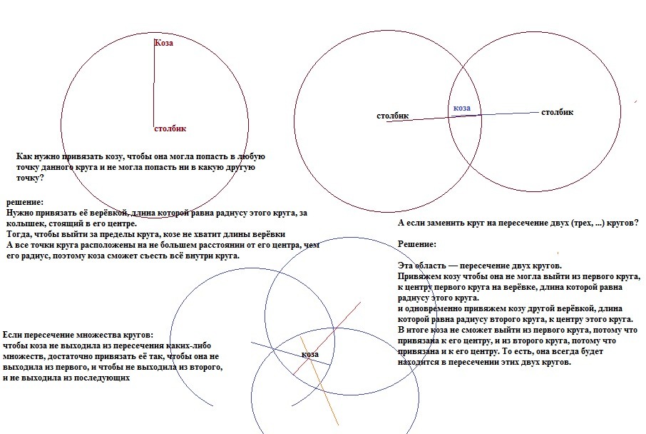 Как нужно привязать козу, чтобы она могла попасть в любую точку данного круга и не могла попасть ни в какую другую точку?