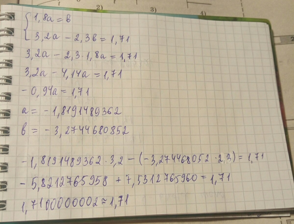 первое число на 1,8 меньше второго .если первое число увеличили в 3,2разв ,а второе увеличили в 2,3 раза , то разность этих чисел будет равна 1,71 .найди эти числа.