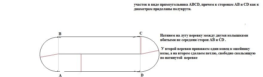На этот раз у Вас странный участок в виде прямоугольника ABCD, причем к сторонам AB и CD как к диаметрам приделаны полукруги.