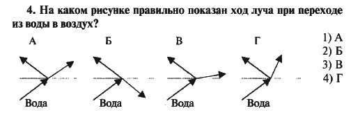 В, т.к угол луча света при выходе из воды на поверхность равняется половине угла луча света, который проходит в воде