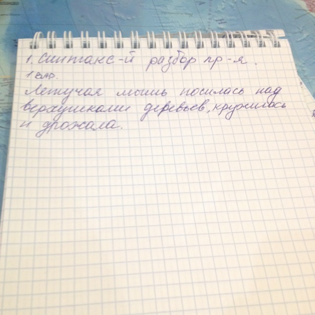 летучая-определение, мышь- подлежащее, носилась-сказуемое,над верхушками-обстоятельство, деревьев-дополнение, кружилась и дрожала- сказуемые