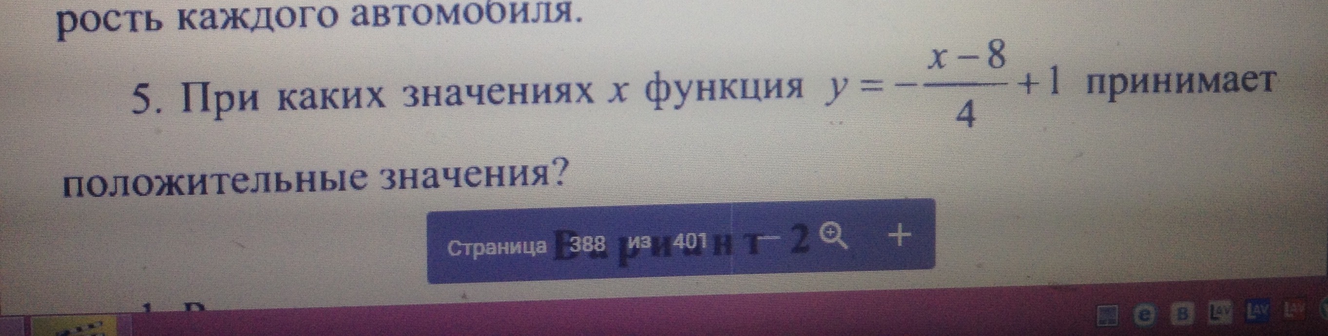 у = -(х - 8)/4 + 1 принимает положительные значения, если выполняется неравенство: -(х - 8)/4 + 1 > 0