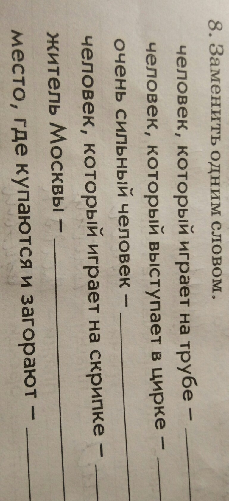 Трубач, циркач, силач, скрипач, москвич, пляж.