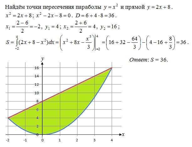Y=x^2, y=2x+8. S-? Площадь надо найти через интеграл. Помогите
